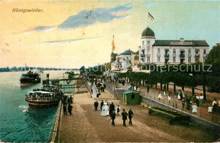 Koenigswinter Hotel Rheinpromenade Schiffsanleger Dampfer Koenigswinter postalisch gelaufen 1911 Erhaltung siehe scans [FriedD77] Frierer
