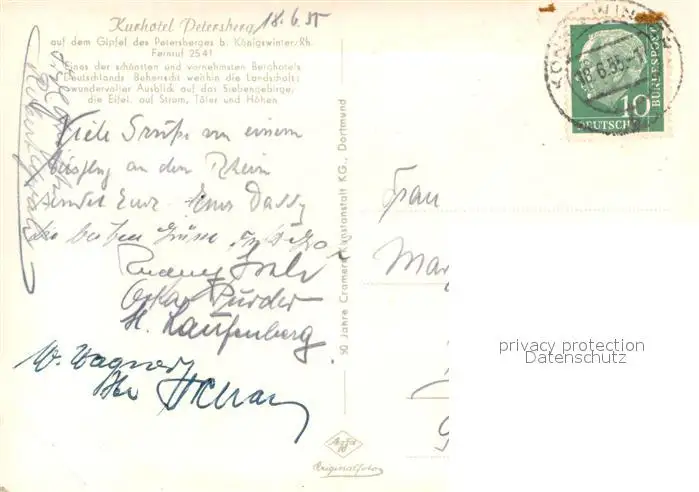 Koenigswinter Kurhotel Petersberg Fliegeraufnahme Koenigswinter postalisch gelaufen 1955 Erhaltung siehe scans [WerneD78] WernPID7