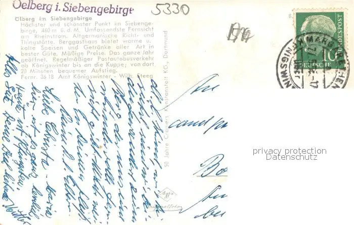 Koenigswinter Panorama Blick vom oelberg ins Rheintal Siebengebirge Koenigswinter postalisch gelaufen ca. 1956 Erhaltung siehe scans [FriedD77] Frierer