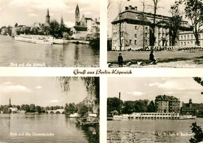 AK / Ansichtskarte Koepenick Blick auf die Altstadt Schlossinsel Dammbruecke MS Becher Fahrgastschiff Dahme Koepenick