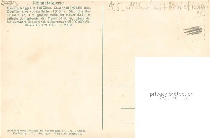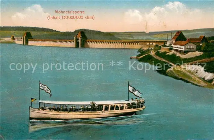 Koerbecke_Moehnesee Moehnetalsperre Staumauer und MS Moehne Koerbecke Moehnesee postalisch nicht gelaufen 1921-1965 Erhaltung siehe scans [WerneD78] WernPID7