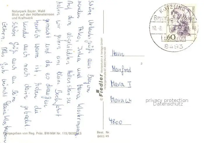 Koetzting Fliegeraufnahme mit Hoellensteinsee und Kraftwerk Koetzting postalisch gelaufen nach 1965 Erhaltung siehe scans [WerneD78] WernPID7