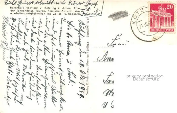 Koetzting Koetztinger Huette Rauchroehren Riedelstein Scharreben Arber Koetzting postalisch gelaufen 1949 Erhaltung siehe scans [KathaD81] Kathoren