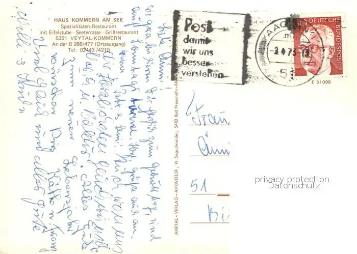 Kommern_Commern_Mechernich Haus Kommern am See Gastraeume postalisch gelaufen 1973 Erhaltung siehe scans [WerneD78] WernPID7