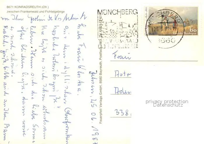Konradsreuth Teilansichten Kirche Kinderspielplatz Industriegebaeude Konradsreuth postalisch gelaufen 1987 Erhaltung siehe scans [FriedD77] Frierer
