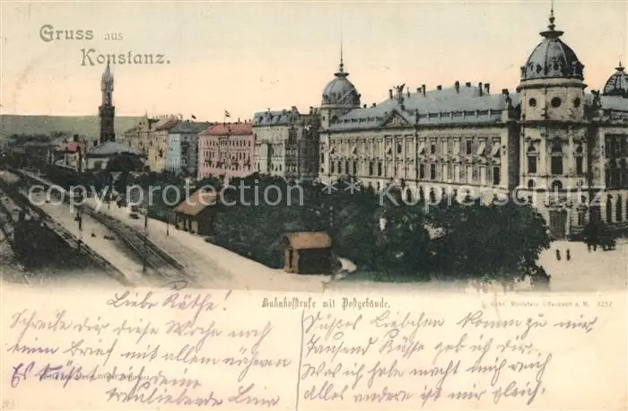 Konstanz_Bodensee Bahnhofstrasse mit Postgebaeude Konstanz_Bodensee postalisch gelaufen 1907 Erhaltung siehe scans [FriedD77] Frierer