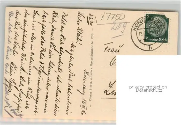 Konstanz_Bodensee Blick auf die Rheinbruecke Konstanz_Bodensee postalisch gelaufen 1940 Erhaltung siehe scans [FriedD77] Frierer