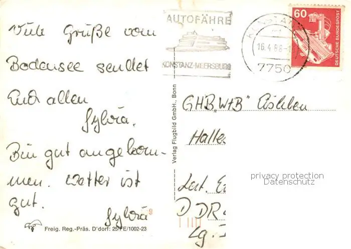 Konstanz_Bodensee Fliegeraufnahme Haus-Ansicht Konstanz_Bodensee postalisch gelaufen 1988 Erhaltung siehe scans [LiesaD40] LiesID40