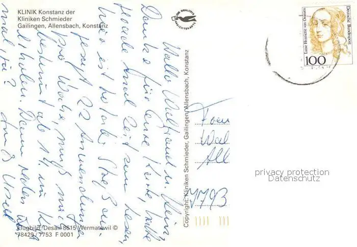 Konstanz_Bodensee Fliegeraufnahme Klinik Konstanz_Bodensee postalisch gelaufen nach 1965 Erhaltung siehe scans [KathaD81] Kathoren