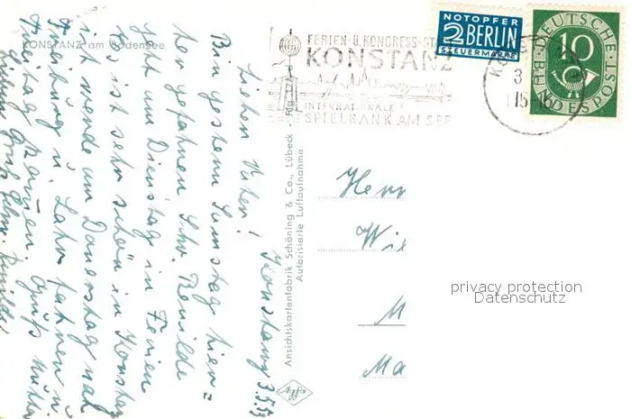 Konstanz_Bodensee Fliegeraufnahme Konstanz_Bodensee postalisch gelaufen 1955 Erhaltung siehe scans [KathaD81] Kathoren