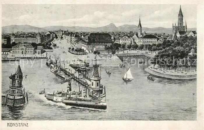 Konstanz_Bodensee Hafen Fliegeraufnahme Konstanz_Bodensee postalisch nicht gelaufen bis 1920 Erhaltung siehe scans [KathaD81] Kathoren