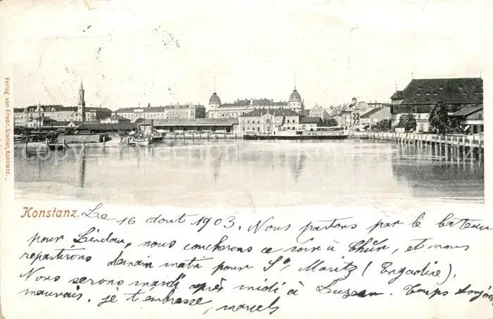 Konstanz_Bodensee Hafen Konstanz_Bodensee postalisch gelaufen 1903 Bahnpost Erhaltung siehe scans [KathaD81] Bahnpost Kathoren