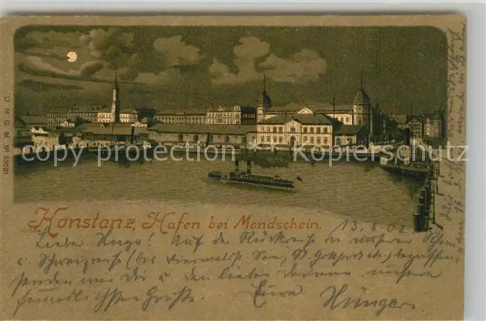 Konstanz_Bodensee Hafen Mondschein Konstanz_Bodensee postalisch gelaufen 1903 Erhaltung siehe scans [KathaD81] Kathoren