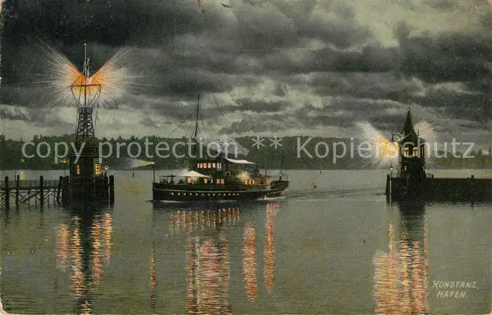 Konstanz_Bodensee Hafen Nachtaufnahme Konstanz_Bodensee postalisch nicht gelaufen bis 1920 Erhaltung siehe scans [KathaD81] Kathoren