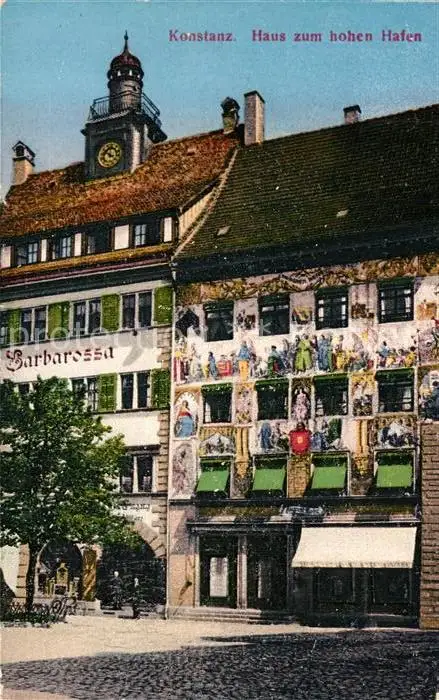 Konstanz_Bodensee Haus zum hohen Hafen Hotel Barbarossa Historisches Gebaeude Konstanz_Bodensee postalisch nicht gelaufen bis 1920 Erhaltung siehe scans [FriedD77] Frierer