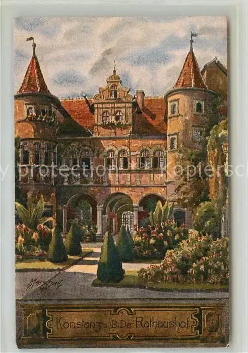 Konstanz_Bodensee Hof des Rathauses Marschall Kuenstlerkarte Konstanz_Bodensee postalisch nicht gelaufen bis 1920 Erhaltung siehe scans [FriedD77] Frierer