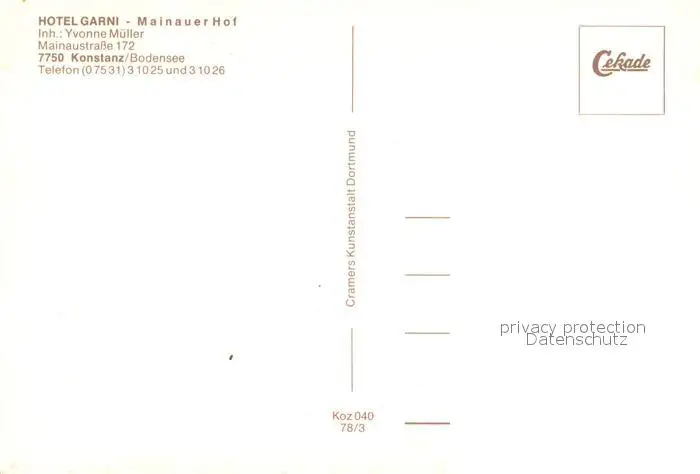 Konstanz_Bodensee Hotel Garni Mainauer Hof Konstanz_Bodensee postalisch nicht gelaufen nach 1965 Erhaltung siehe scans [WerneD78] WernPID7