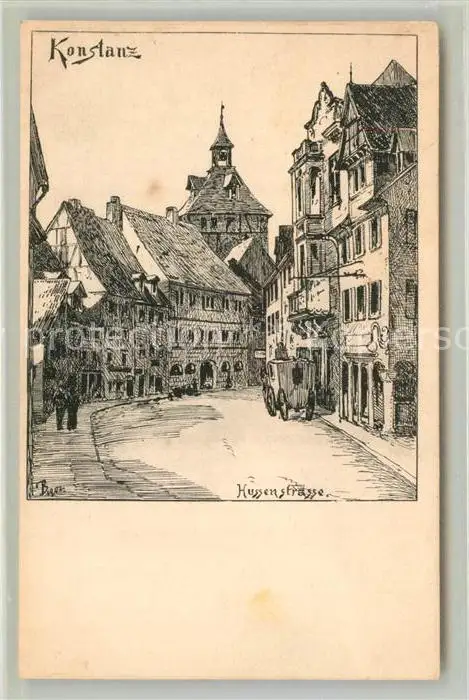 Konstanz_Bodensee Hussenstrasse Zeichnung Kuenstlerkarte Konstanz_Bodensee postalisch nicht gelaufen bis 1920 Erhaltung siehe scans [FriedD77] Frierer