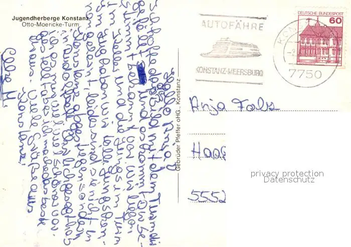 Konstanz_Bodensee Jugendherberge Otto Moericke Turm Konstanz_Bodensee postalisch gelaufen 1987 Erhaltung siehe scans [FriedD77] Frierer