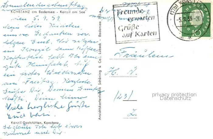 Konstanz_Bodensee Konzil am See Konstanz_Bodensee postalisch gelaufen 1959 Erhaltung siehe scans [NatalD47] NataID47