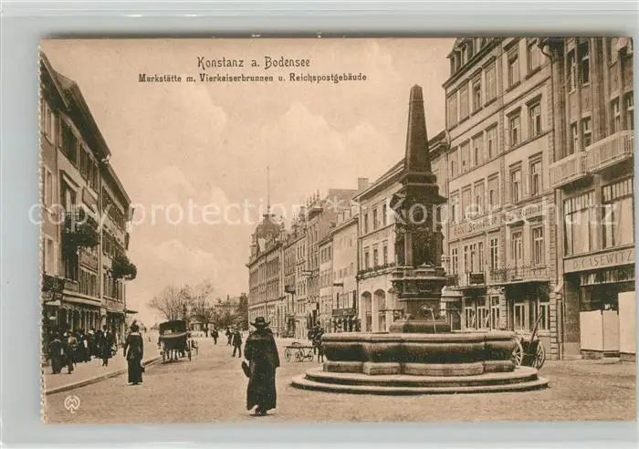 AK / Ansichtskarte Konstanz_Bodensee Marktstaette Vierkaiserbrunnen Reichspostgebaeude Konstanz_Bodensee