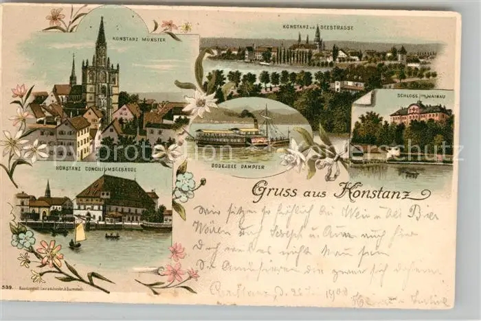 Konstanz_Bodensee Muenster Seestrasse Schloss Mainau Conciliumsgebaeude Konstanz_Bodensee postalisch gelaufen 1901 Erhaltung siehe scans [KathaD81] Kathoren
