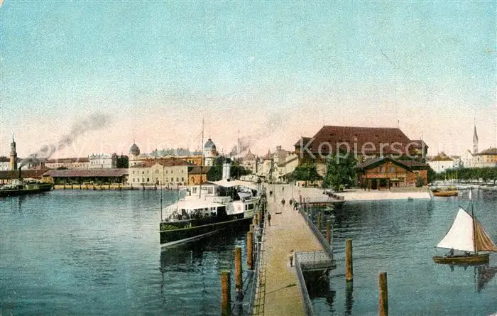 Konstanz_Bodensee Panorama vom Leuchtturm Hafen Dampfer Konstanz_Bodensee postalisch nicht gelaufen bis 1920 Erhaltung siehe scans [FriedD77] Frierer