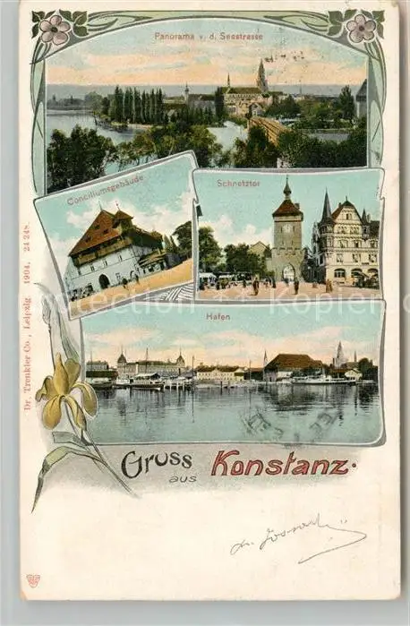 Konstanz_Bodensee Panorama von der Seestrasse Conciliumsgebaeude Schnetztor Hafen Konstanz_Bodensee postalisch gelaufen 1906 Erhaltung siehe scans [FriedD77] Frierer