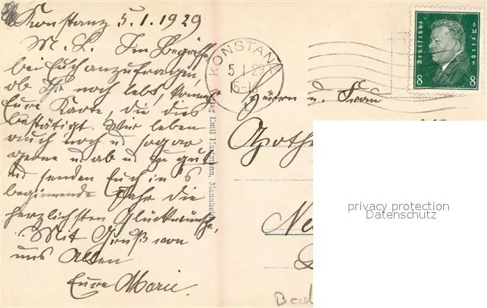 Konstanz_Bodensee Partie beim Husenstein Konstanz_Bodensee postalisch gelaufen 1929 Erhaltung siehe scans [FriedD77] Frierer