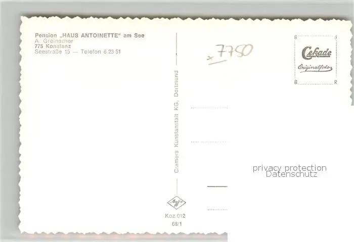 Konstanz_Bodensee Pension Haus Antoinette am See Konstanz_Bodensee postalisch nicht gelaufen 1968 Erhaltung siehe scans [FriedD77] Frierer