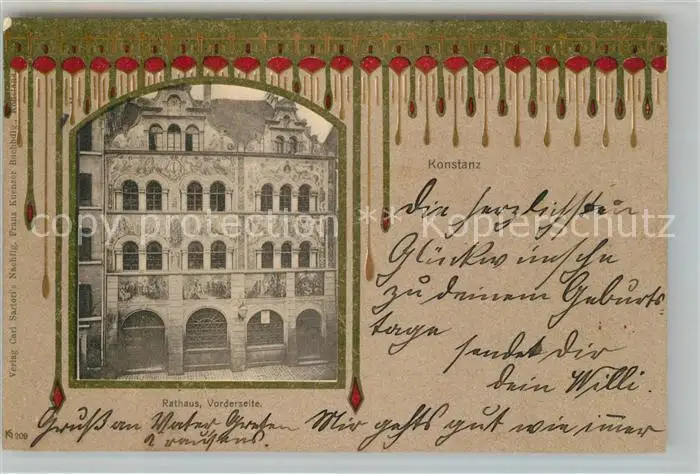 Konstanz_Bodensee Rathaus Vorderseite Konstanz_Bodensee postalisch gelaufen 1903 Erhaltung siehe scans [FriedD77] Frierer