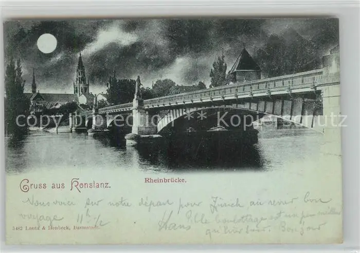 Konstanz_Bodensee Rheinbr?cke Mondschein Konstanz_Bodensee postalisch gelaufen 1899 Bahnpost Erhaltung siehe scans [KathaD81] Bahnpost Kathoren