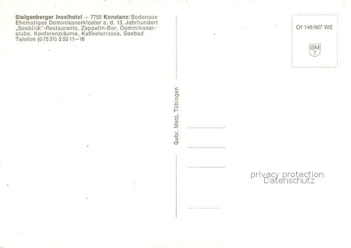 Konstanz_Bodensee Steigenberger Inselhotel Gaststube Terrasse Konstanz_Bodensee postalisch nicht gelaufen nach 1965 Erhaltung siehe scans [WerneD78] WernPID7