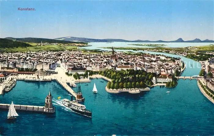 Konstanz_Bodensee aus der Vogelperspektive Konstanz_Bodensee postalisch nicht gelaufen bis 1920 Erhaltung siehe scans [FriedD77] Frierer