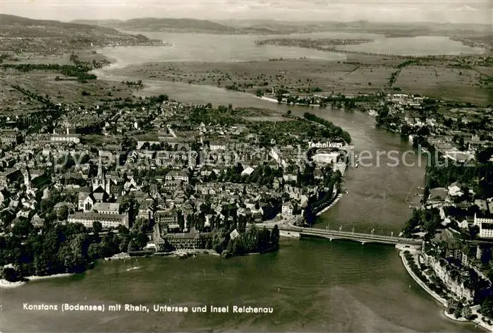 Konstanz_Bodensee mit Rhein Untersee und Insel Reichenau Fliegeraufnahme Konstanz_Bodensee postalisch nicht gelaufen 1921-1965 Erhaltung siehe scans [FriedD77] Frierer