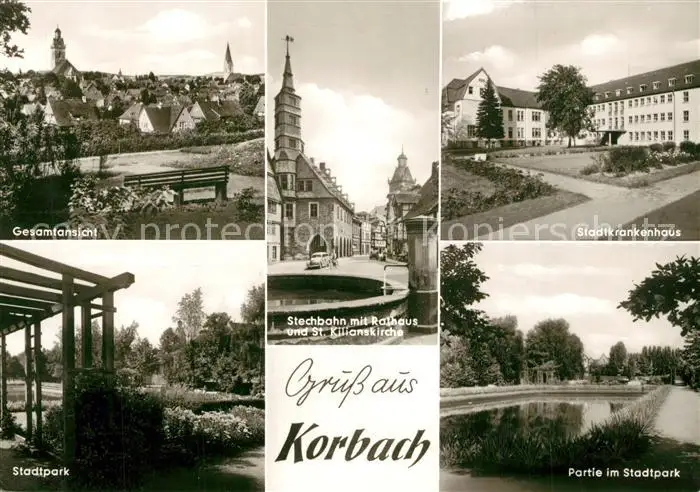 Korbach Stadtpark Stadtkrankenhaus Stechbahn Rathaus Kirche Korbach postalisch nicht gelaufen 1921-1965 Erhaltung siehe scans [KathaD81] Kathoren