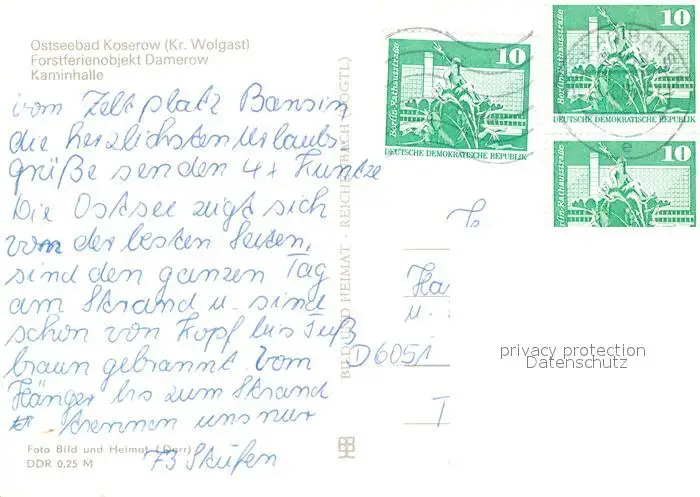 Koserow_Ostseebad_Usedom Forstferienobjekt Damerow Kaminhalle Koserow_Ostseebad_Usedom postalisch gelaufen 1979 Erhaltung siehe scans [FriedD77] Frierer