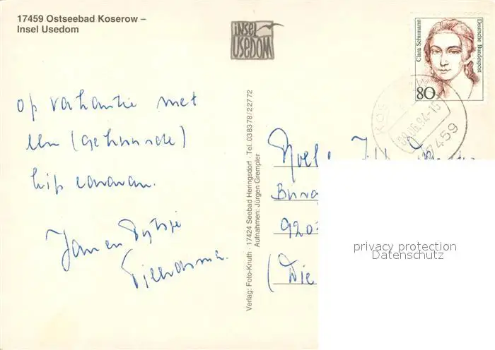 Koserow_Ostseebad_Usedom Streckelsberg Strand Kueste Koserow_Ostseebad_Usedom postalisch gelaufen 1994 Erhaltung siehe scans [FriedD77] Frierer
