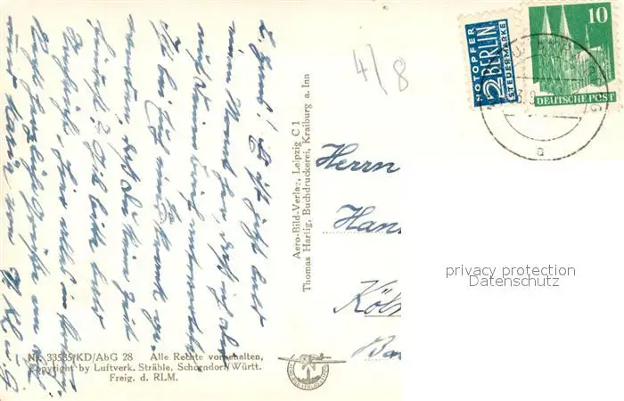 Kraiburg_Inn Fliegeraufnahme Kraiburg Inn postalisch gelaufen 1921-1965 Erhaltung siehe scans [PaolaD17] PaolPID1