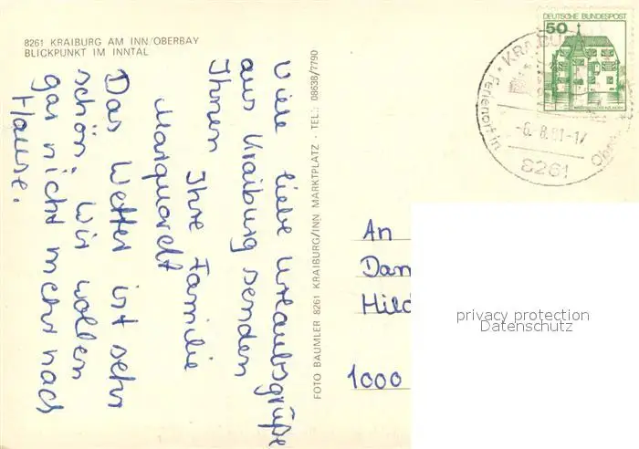 Kraiburg_Inn Ortspartie mit Brunnen Kraiburg Inn postalisch gelaufen 1981 Erhaltung siehe scans [FriedD77] Frierer