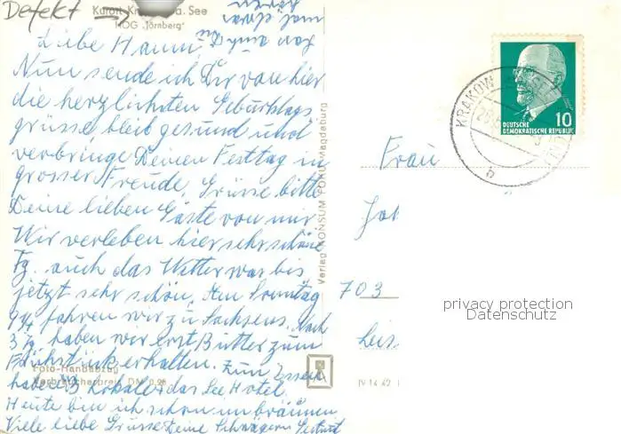 Krakow_See HOG Joernberg Krakow_See postalisch gelaufen nach 1965 Erhaltung siehe scans [FriedD77] Frierer
