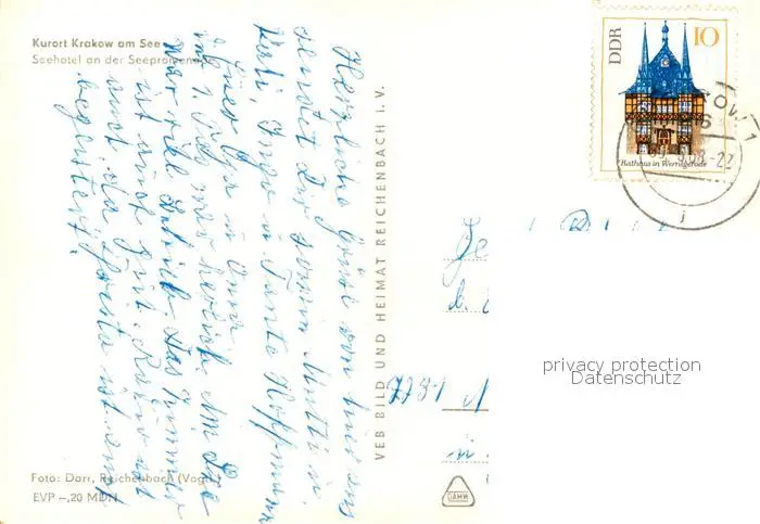 Krakow_See Seehotel an der Seepromenade Krakow_See postalisch gelaufen 1968 Erhaltung siehe scans [LiesaD40] LiesID40