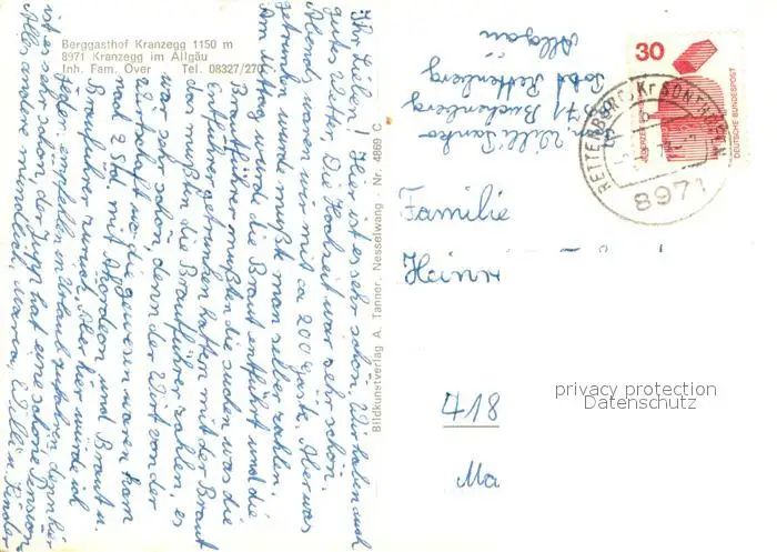 Kranzegg Berggasthof Café Bergbahn Freibad Alphornblaeser Alpvieh Alpenrosen Gruentengipfel Allgaeuer Alpen Kranzegg postalisch gelaufen 1973 Erhaltung siehe scans [FriedD77] Frierer