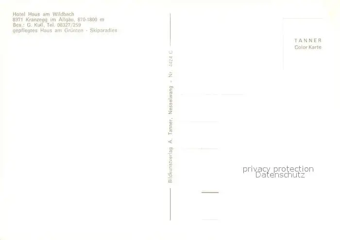 Kranzegg Hotel Haus am Wildbach Kranzegg postalisch nicht gelaufen nach 1965 Erhaltung siehe scans [WerneD78] WernPID7