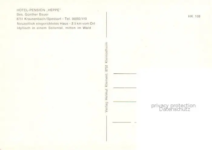 Krausenbach Panorama Hotel Pension Heppe Gastraeume Krausenbach postalisch nicht gelaufen 1921-1965 Erhaltung siehe scans [FriedD77] Frierer