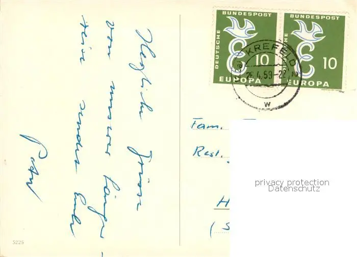 Krefeld_Rhein Partie im Stadtwald Hauptbahnhof Rheinbruecke Jugendherberge Burg Linn postalisch gelaufen 1959 Erhaltung siehe scans [WerneD78] WernPID7