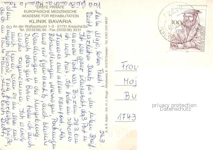 Kreischa Klinik Bavaria Rehazentrum Fliegeraufnahme Kreischa postalisch gelaufen nach 1965 Erhaltung siehe scans [FriedD77] Frierer