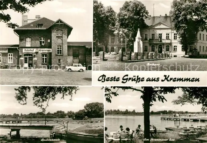 AK / Ansichtskarte Kremmen Bahnhof Rathaus Badeanstalt Kremmener See Kremmen