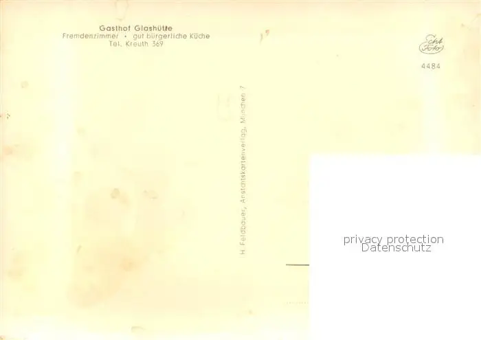 Kreuth_Bad Gasthof Glashuette Wildfuetterung Kreuth_Bad postalisch nicht gelaufen 1921-1965 Erhaltung siehe scans [WerneD78] WernPID7