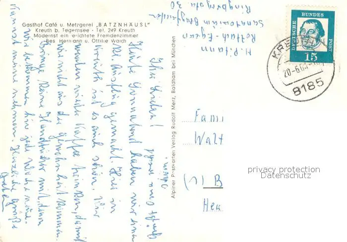 Kreuth_Tegernsee Gasthof Café Batznhaeusl Kreuth Tegernsee postalisch gelaufen 1964 Erhaltung siehe scans [FriedD77] Frierer